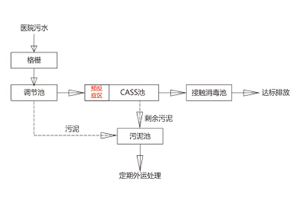CASS工艺是将序批式活性污泥法(SBR)的反应池沿长度方向分为两部分,前部为生物选择区也称预反应区,后部为主反应区。在主反应区后部安装了可升降的滗水装置,实现了连续进水间歇排水的周期循环运行,集曝气沉淀、排水于一体。CASS工艺是一个好氧/缺氧/厌氧交替运行的过程,具有一定脱氮除磷效果,废水以推流方式运行,而各反应区则以完全混合的形式运行以实现同步硝化一反硝化和生物除磷。